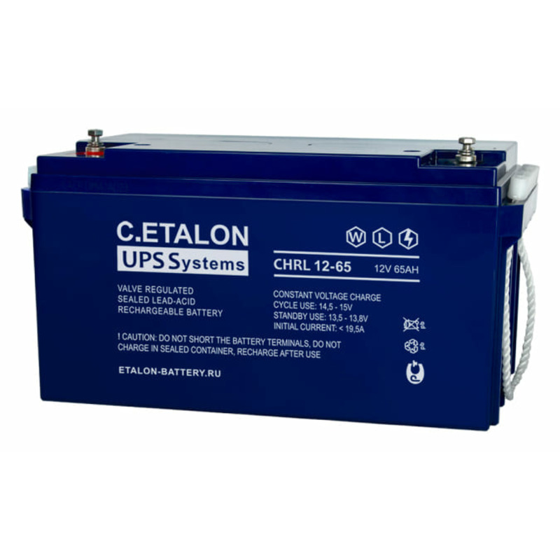 Аккумулятор ETALON CHRL 12-65 является стационарным свинцово-кислотным необслуживаемым и изготовлен по технологии AGM. Серия C.ETALON спроектирована под применение в источниках бесперебойного питания. Отличительная особенность – повышенные разрядные характеристики. Расчетный срок службы: 12 лет. Предназначены для работы как в буферном, так и в циклическом режимах. Серия сертифицирована для использования предприятиями на территории Российской Федерации.